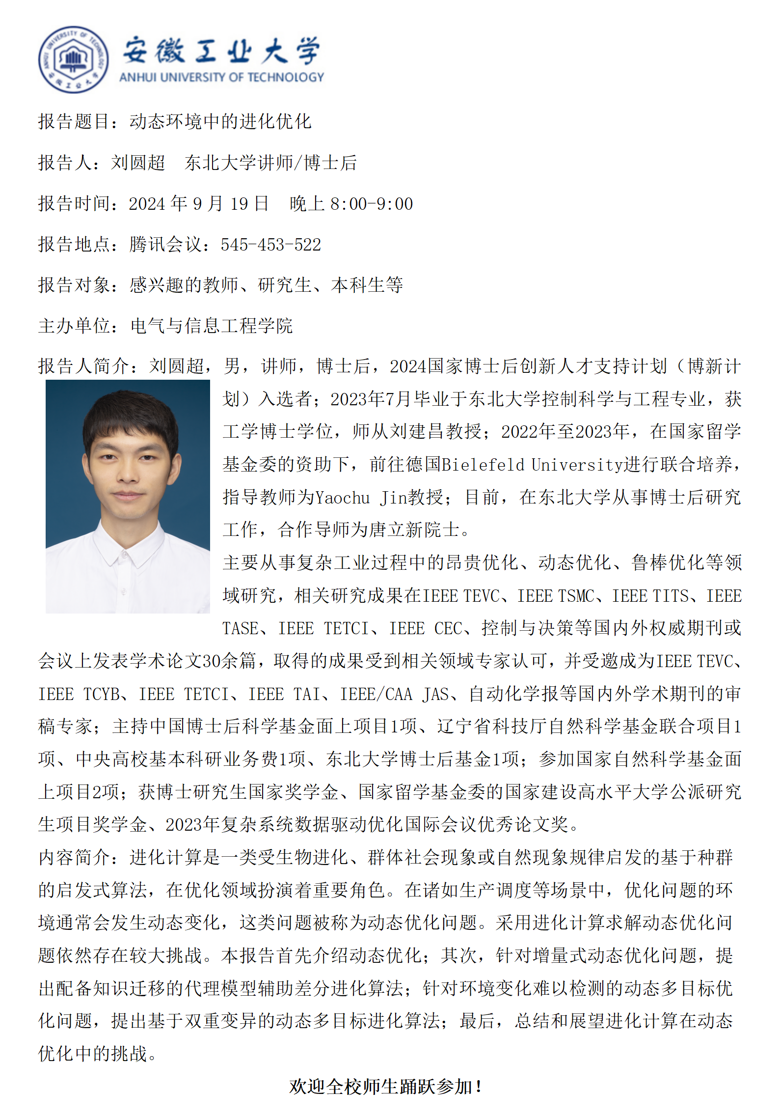 砺山学术报告之四十-动态环境中的进化优化