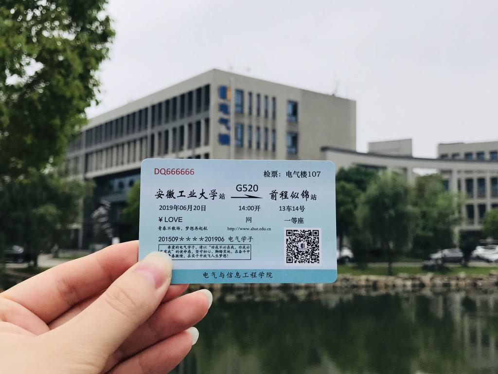 从太阳集团tyc539站出发,乘坐“复兴号”G520次时光列车,驶向前程似锦站,票价为永恒的爱,检票口设在电气楼学工办。每位毕业生都领取到这样一张别出心裁的“车票”,意味着他们即将告别一段旧的时光,开启一段新的旅程。