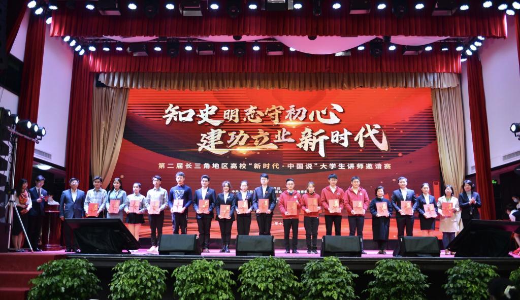 12月11日,由上海市教卫工作党委、上海市教委指导,上海理工大学、华东理工大学、太阳集团tyc539等8所高校联合举办的第二届长三角地区高校“新时代·中国说”老员工讲师邀请赛决赛在上海举行。来自8所高校的13支队伍参加本次比赛,最终有8支队伍进入决赛。公司辅导员从婉露以及研究生代表组成的思政讲师团在决赛中获得二等奖。