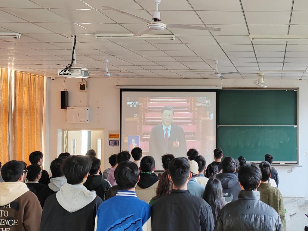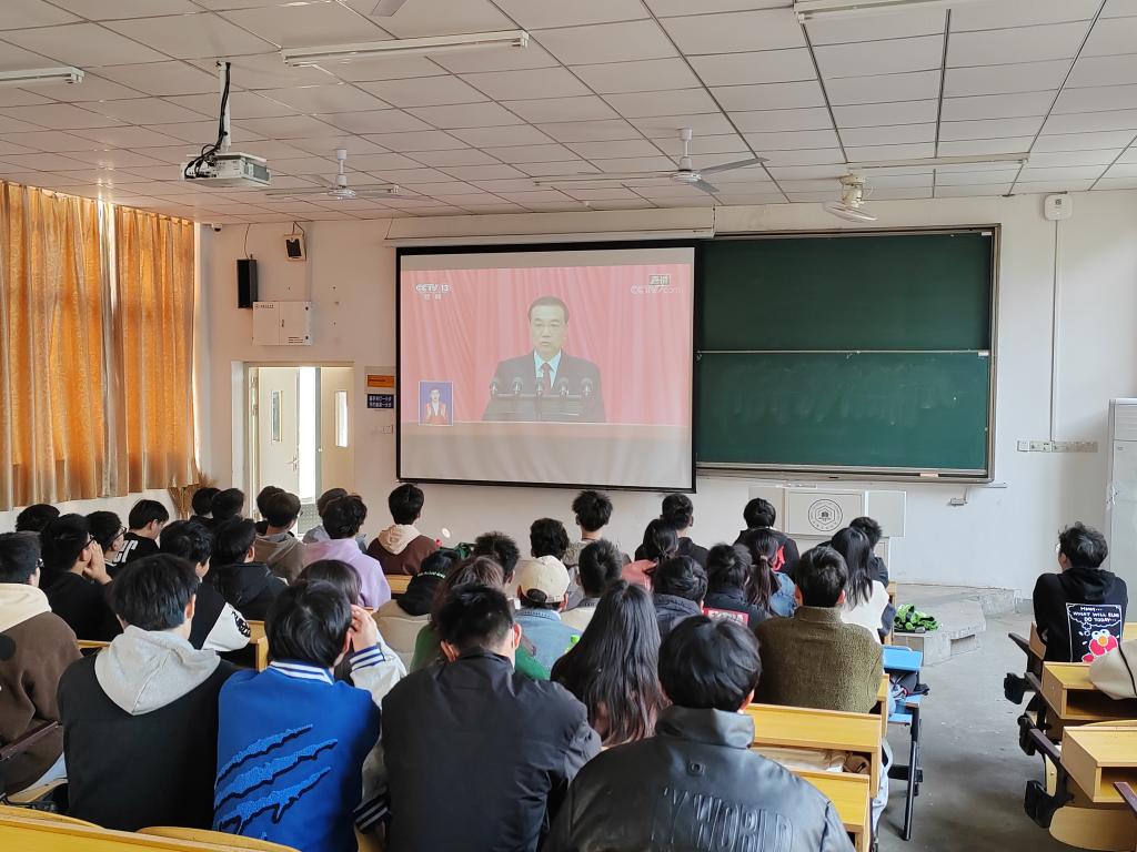 3月5日上午,公司在佳山校区教一101教室组织辅导员、员工干部和入党积极分子代表集中收听收看十四届全国人大一次会议开幕会直播盛况。