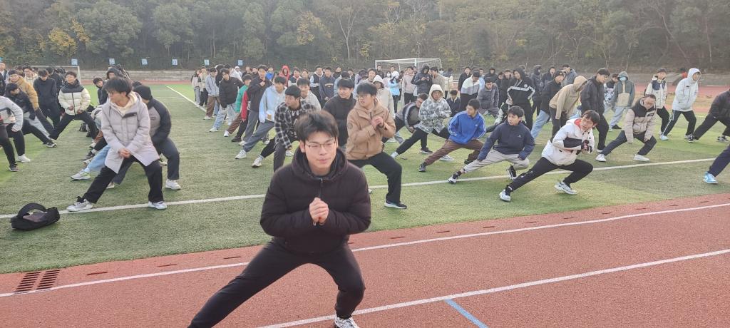 为了激励23级新生加强体育锻炼,增强自我锻炼的意识,强健自身体质,公司开设新生乐跑活动。早上6:40,员工准时在操场主席台前集合完毕。电气公司23级全体新生及辅导员老师在活动横幅上签下自己的名字,这一庄重而又热烈的仪式感激发了同学们的集体荣誉感。冬季的早晨气温较低,为了防止感冒和运动伤害,晨跑前老师带领同学们转动脚腕,活动膝关节,为跑步做好热身。接着,在辅导员和员工会成员的带领下,600余名同学迈着有力的步伐,呼吸着清冷的空气,迎着初生的朝阳,一起在新田径场开始了乐跑锻炼,开启了元气满满的一天。他们的脸上洋溢着健康的红润,流露出对生活的热爱和对体育的执着。尽管寒风凛冽,他们依然坚持在操场上,尽情挥洒汗水,释放青春的活力。