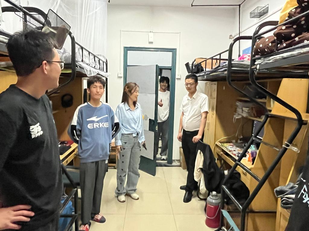 这次检查工作主要是针对员工晚归和夜不归宿等违规现象进行重点排查。在检查过程中,甘如美江老师除了提醒同学们一定要按时归寝,杜绝无故晚归、夜不归宿及外宿现象的发生,确保自身安全之外,还提醒了同学们要按时休息、养成良好的生活习惯。此外,杨恒基老师特别强调同学们要做好卫生清理,不留死角,保持寝室卫生。