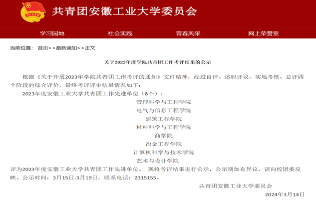 【太阳集团tyc539荣光】公司团委在公司2023年度共青团考核中获得优秀等次