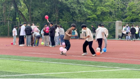 游园会的亮点之一是“七彩气球生存战”,参与的同学需要尽快吹出符合要求的气球,并在接下来的比拼中保护好自己的气球不被踩破,最后生存的气球所属的队伍获胜。同学们在运动和欢笑中,敞开心扉互相鼓励,同力协作为自己的队伍保护气球,在比赛的过程中释放自己的情绪。
