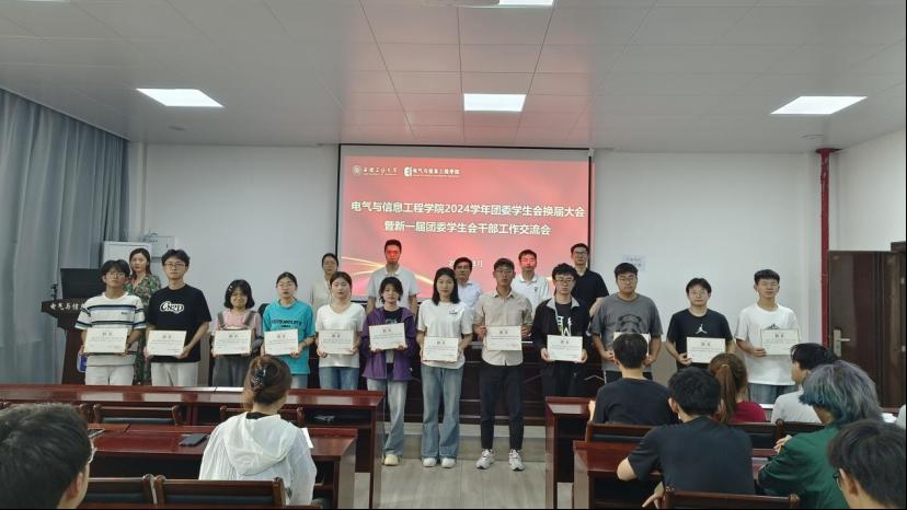 换届大会在嘹亮的国歌声中拉开帷幕。会上,汤敏带领同学们一起学习了《中国共产主义青年团纪律处分工作规则》;杨恒基介绍了院团委员工会换届的过程,并宣读了电气公司第28届团委员工会主席团、各部门部长名单;院团委副书记李林茜同学代表27届团委、员工会发言,她结合自己的工作体会与大家分享了收获和不足,并表达了对28届团委、员工会的期待。院员工会主席王毅同学代表28届团委、员工会发言。他说,接过这个接力棒,倍感责任重大,使命光荣,我们一定不辜负公司领导老师的期盼,以饱满的热情努力完成公司交给的工作,争取取得更加丰硕的成果。