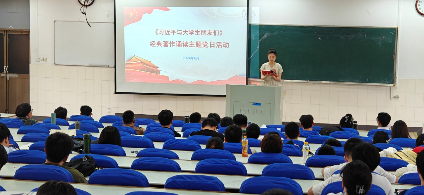 会上,来自研究生学术型党支部的党员代表黄雅玲带领大家学习了《习近平与老员工朋友们》中的一个章节:“习近平总书记勉励我们爱国、励志、求真、力行”。她以饱满的精神状态投入到诵读中,声音洪亮而坚定,带大家重温了习近平总书记来到北京大学的采访和学习经历。习近平总书记勉励广大青年要“爱国、励志、求真、力行”,努力成长为德智体美劳全面发展的社会主义建设者和接班人,让中华民族伟大复兴在奋斗中梦想成真。