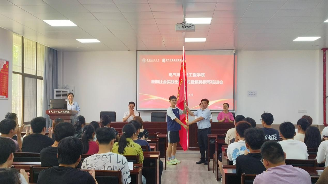 为深入学习贯彻习近平新时代中国特色社会主义思想和党的二十大精神,落实习近平总书记五四青年节对全国广大青年寄语,进一步用好社会大课堂,动员引领青年员工在投身基层建设、服务家乡发展中坚定信念。7月3日下午,在电气楼113会议室举办2024年老员工暑期社会实践出征仪式暨稿件撰写培训会。电气公司党委副书记、纪委书记、副经理李克明、公司副处级辅导员李修正,公司团委副书记杨恒基、汤敏,各社会实践队队长、员工干部参加仪式。仪式由院团委书记甘如美江主持。